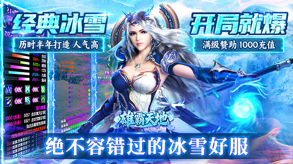 雄霸天地(冰雪打金送1000充)真正低消费,高激情,散人扛米,老板激情,只做人气服。 真正的不辜负每一位真诚玩家提供的建议和不足进行改善。 恳请浪费您一分钟的时间,绝不容错过的冰雪好服。 上线赠送:满级赞助,自动拾取,自动回收,1000充值。